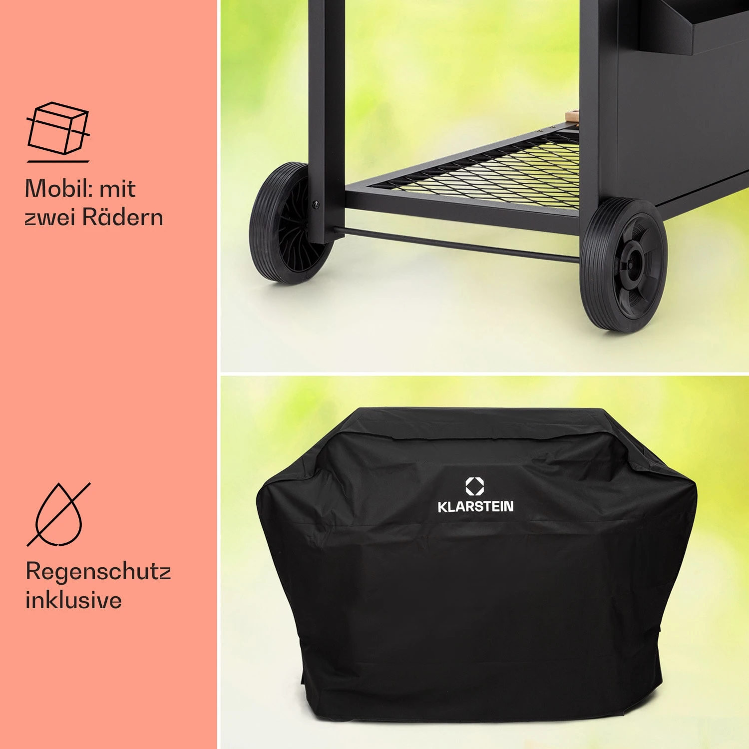 • Ablage aus Echtholz unten für Holzkohle oder Grillequipment