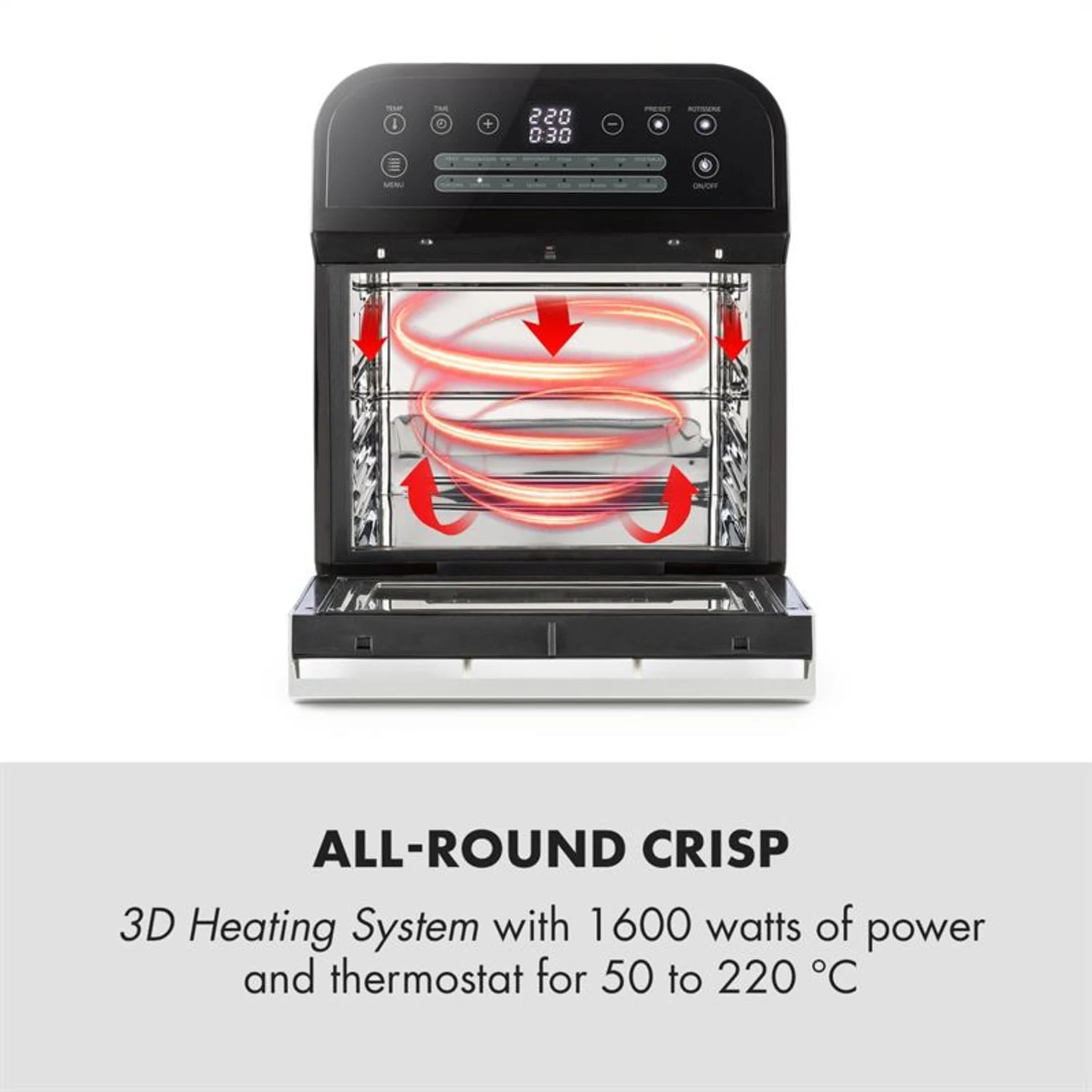 AeroVital Cube Heißluftfritteuse 1600W 12l Timer 16 Programme Schwarz -Klarstein 10033248 yy 0007 logo Klarstein AeroVital Cube Heissluftfritteuse schwarz reedit
