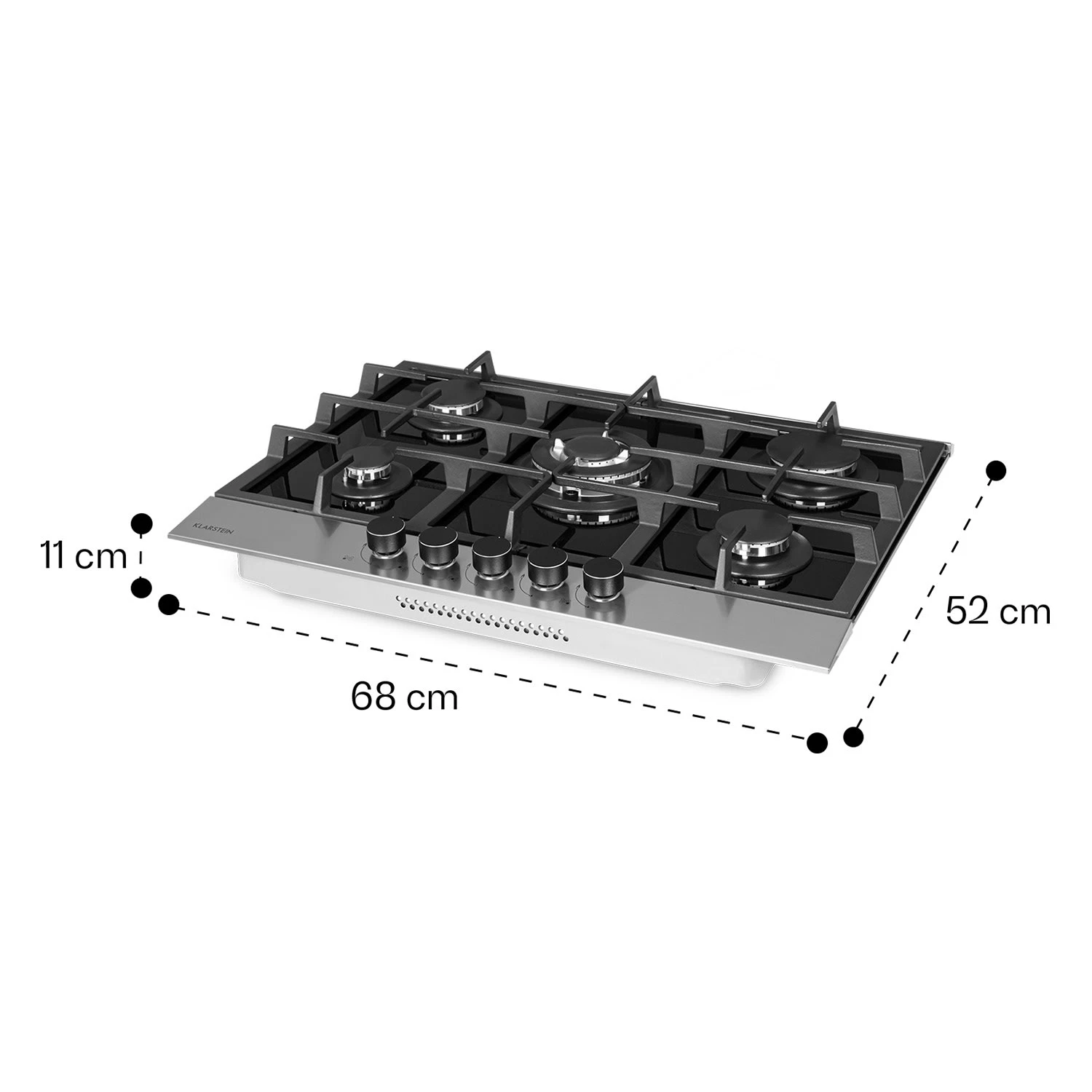 Alchemist 5 Zonen Gaskochfeld Aluminium-Brenner Glaskeramik Schwarz -Klarstein 10034970 yy 0011 dimensions