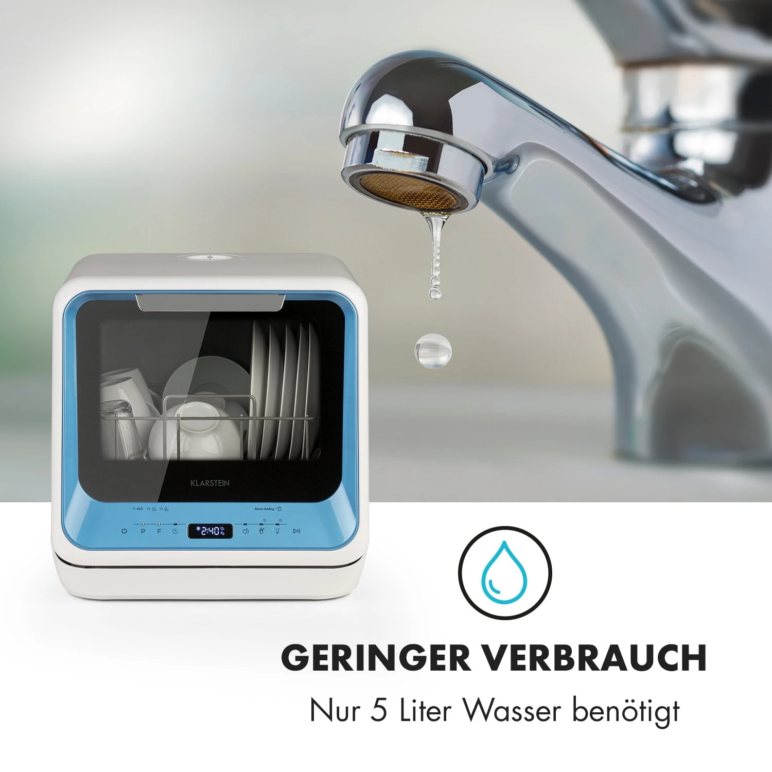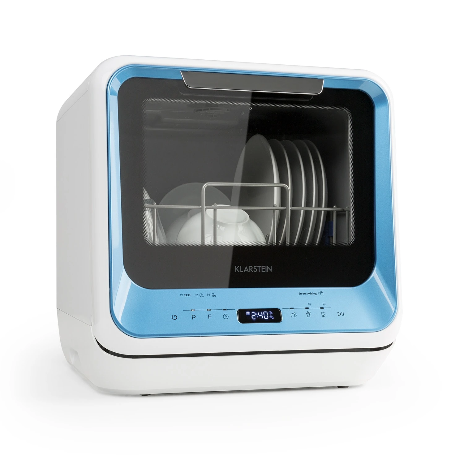 Der Klarstein Amazonia Mini-Geschirrspüler ist die perfekte Spülhilfe für Single-Küchen, Ferienwohnungen oder Camping! Bis zu zwei Maßgedecke finden in ihm Platz und werden innerhalb kürzester Zeit wieder blitzblank für die nächste Mahlzeit. Über das LED-Display kannst du einfach und bequem zwischen 6 effizienten Spülprogrammen wählen.