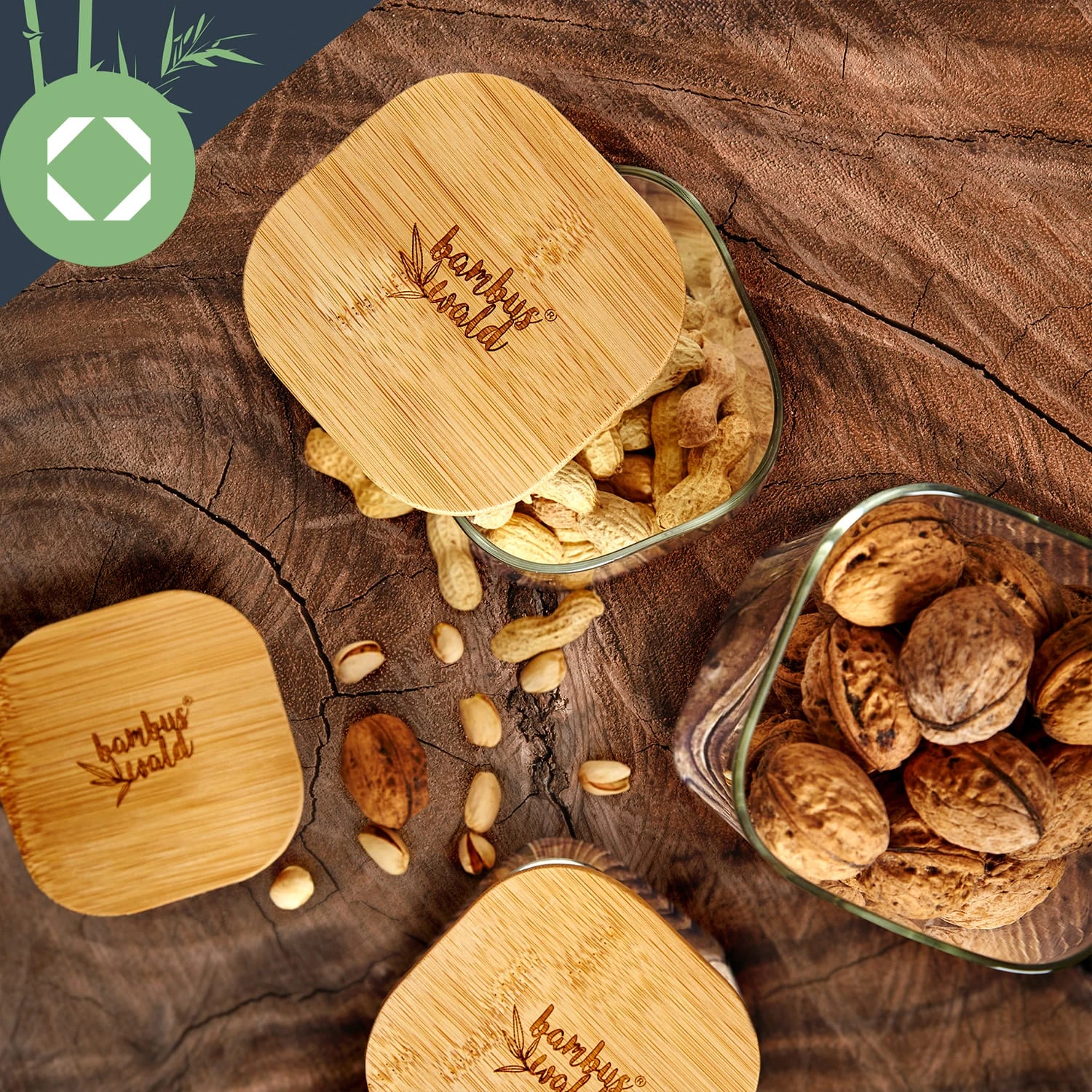 • eckiges Vorratsglas mit Bambusdeckel