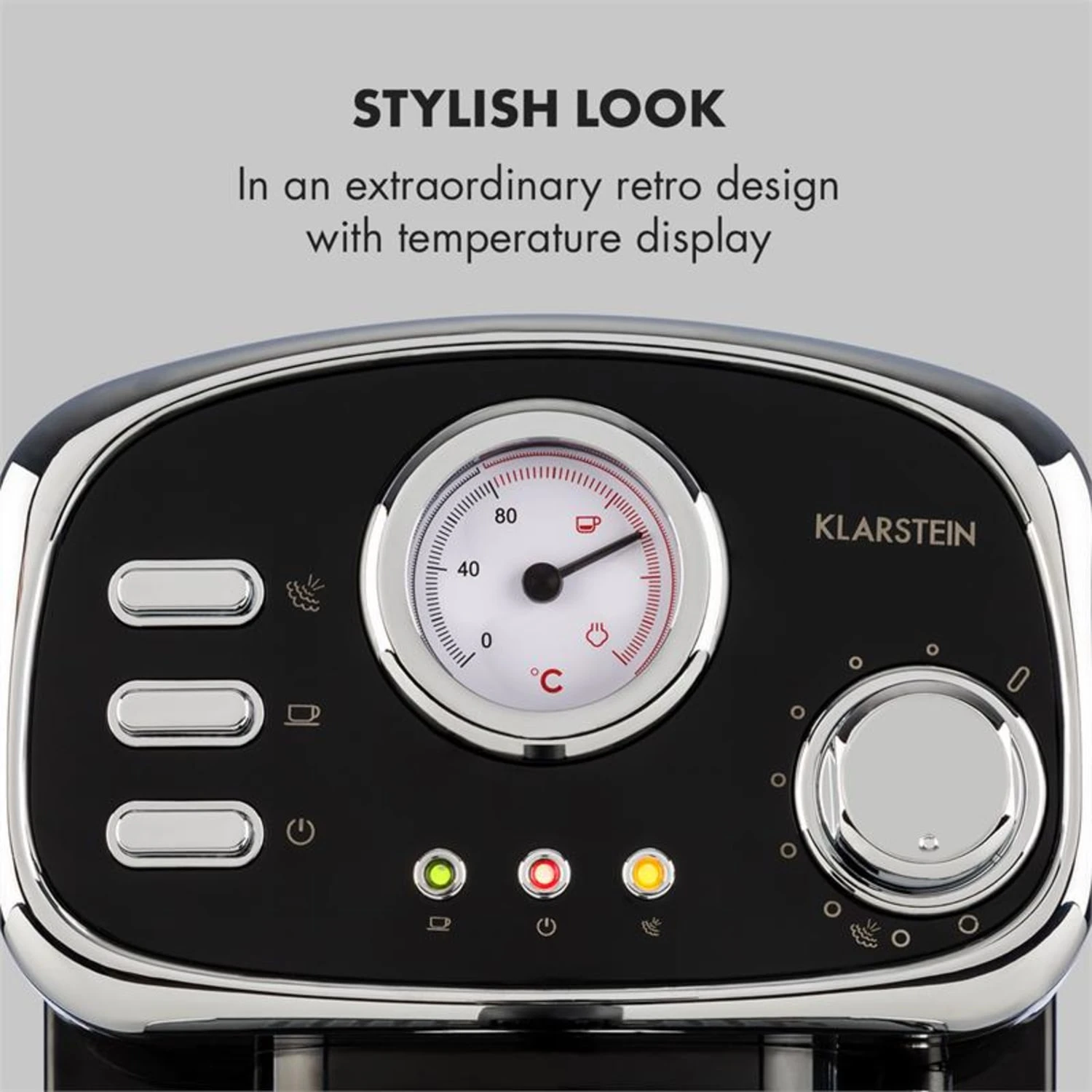 Mit ihrem außergewöhnlichen Retro-Design wird die Espressionata Gusto Espressomaschine von Klarstein zu einem Blickfang in jeder Küche und begeistert immer wieder mit einer frisch zubereiteten Kaffeespezialität.