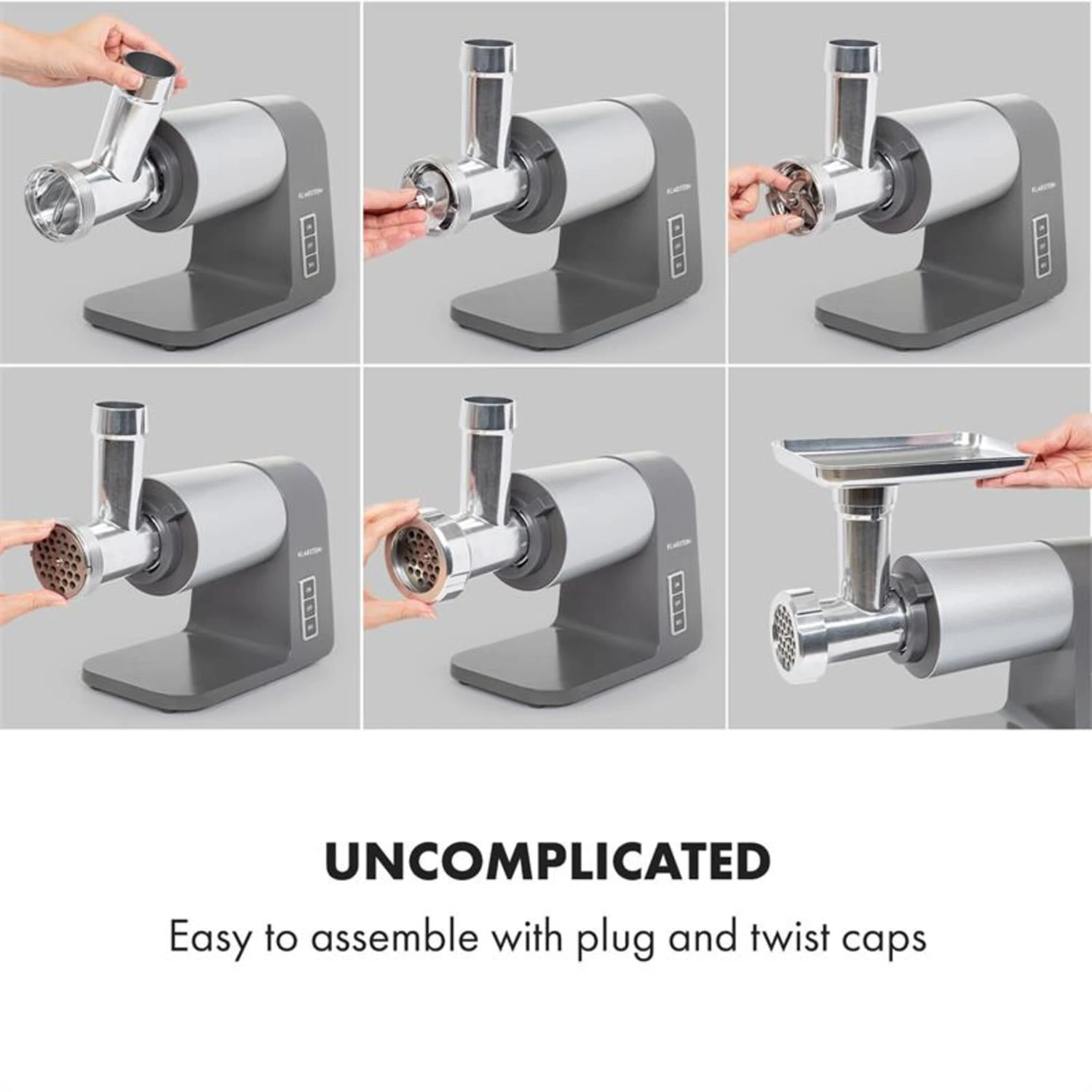 Mett Max Elektrischer Fleischwolf 600W Kupfermotor Aluminium -Klarstein 10034244 yy 0004 logo Klarstein Mett Max elektrischer Fleischwolf grau
