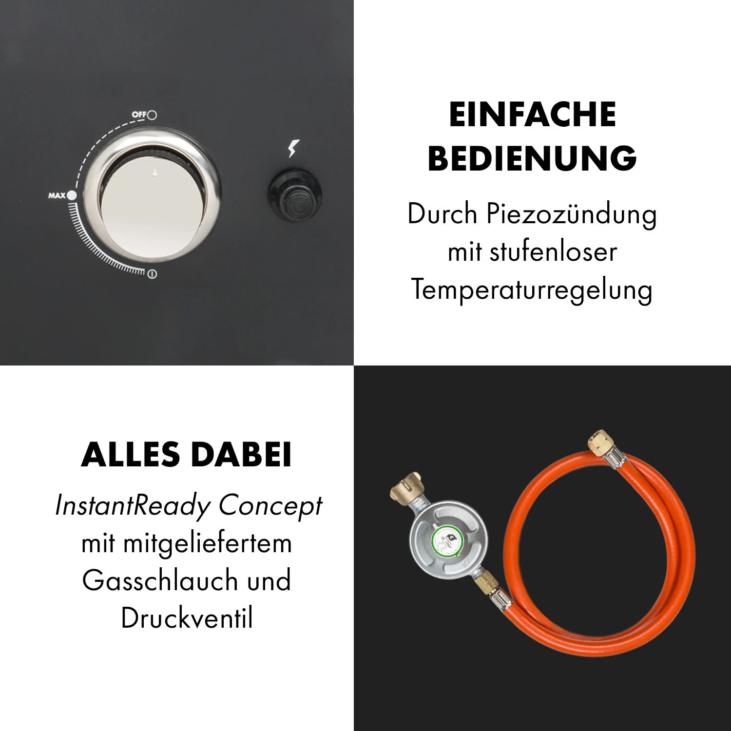 Mit einer Heizleistung von 2,5 kW und der Höchsttemperatur von 180 °C / 350 °F ist der Pasadena Gas-Räuchergrill nicht nur für die zuverlässige Zubereitung von hochwertigem Grillgut geeignet, sondern kann auch als Räucherofen und Dampfgarer für Fleisch und Gemüse überzeugen. Eine doppelwandige Stahltür mit Pulverbeschichtung sorgt für eine gleichbleibend hohe Temperatur ohne Hitzeverlust, während ein Sichtfenster aus Glas jederzeit die Kontrolle über Grill- und Räuchergut gewährleistet. Dem 4-teiligen Grillrost aus emailliertem Stahl stehen 5 Einschub-Möglichkeiten zur Verfügung, die für die passende Höhe über einem Rundbrenner aus Edelstahl sorgen und somit beste Grill-, Räucher- und Gar-Ergebnisse garantieren. Eine Edelstahl-Fettauffangschale kümmert sich dabei zuverlässig um herabfallender Fett- und Speisereste während eine mit Holzspänen befüllbare Edelstahl-Räucherbox dem Fleisch eine besonders geschmeidig-rauchige Geschmacksnote verleiht. Dank InstantReady Concept mit mitgeliefertem Gasschlauch und Druckventil kann der Räuchergrill ohne mühsames Zukaufen von Zubehör direkt an eine Gasflasche angeschlossen und sofort in Betrieb genommen werden. Ein Piezozünder entfacht die Flamme, die mittels stufenloser Temperaturregelung in Ihrer Intensität reguliert werden kann. Ein  integriertes Thermometer ermöglicht zusätzlich zum Sichtfenster eine genaue Überwachung des Geschehens und das Erreichen gewünschter Resultate. An der Oberseite des Räuchergrills sorgt eine verschließbare Luftklappe für eine regulierbare Ventilation. Seitliche Tragegriffe erleichtern darüber hinaus das Versetzen und ermöglichen einen einfachen Transport.