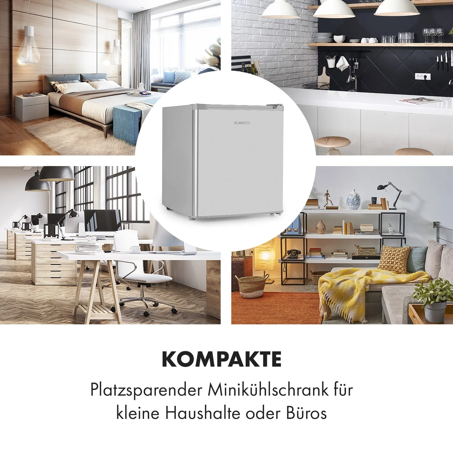 Der platzsparenden Kühlexperte: Der Scooby Minikühlschrank von Klarstein versorgt dich mit erfrischend gekühlten Getränken und Snacks.