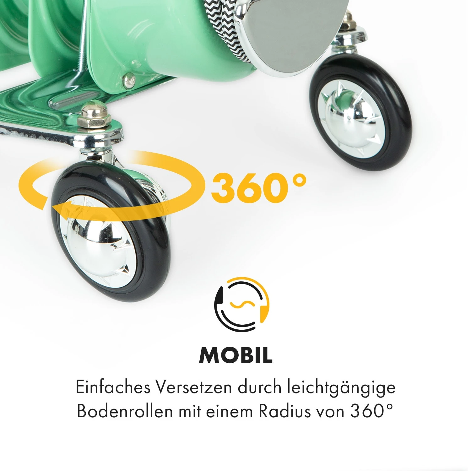 Für die mobile Nutzung sorgen das geringe Gewicht und 4 Bodenrollen mit einem Radius von 360°, mit denen die Elektroheizung ganz einfach ihren Standort wechseln kann. Schnell angenehme Temperaturen im Zimmer oder Büro, in der Werkstatt oder Garage: Der Thermaxx Retroheat Ölradiator von Klarstein ist für jeden Haushalt nicht nur optisch ein Gewinn!